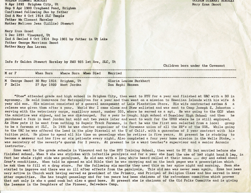 Golden Stewart and Mary Erma SmootHorsley Family